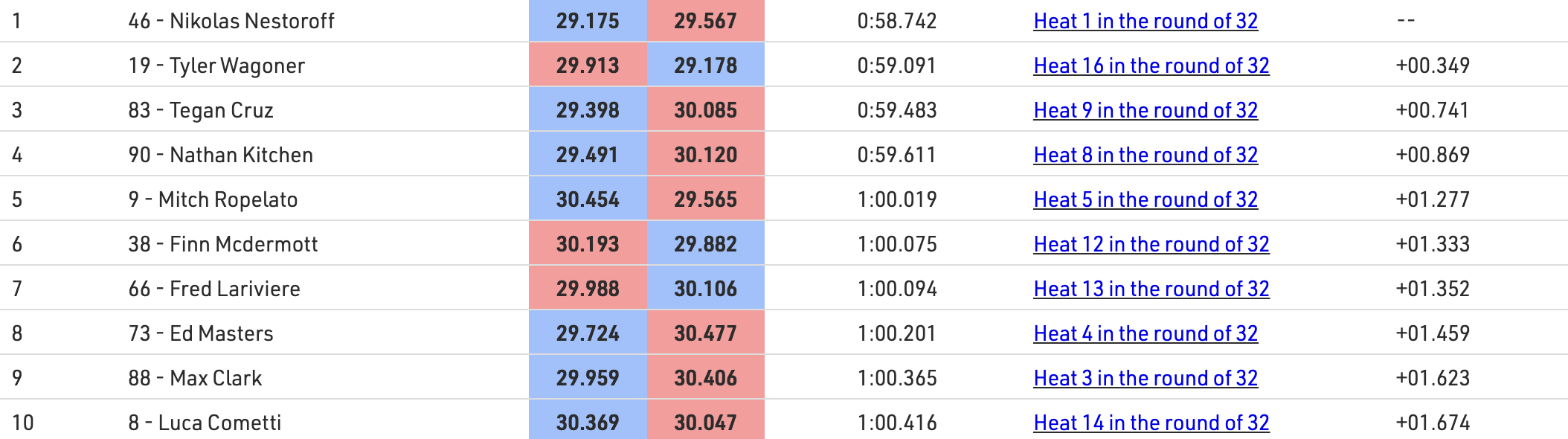 Pro Men and Women Top 10 qualis - full results here - https://my.raceresult.com/391331/results