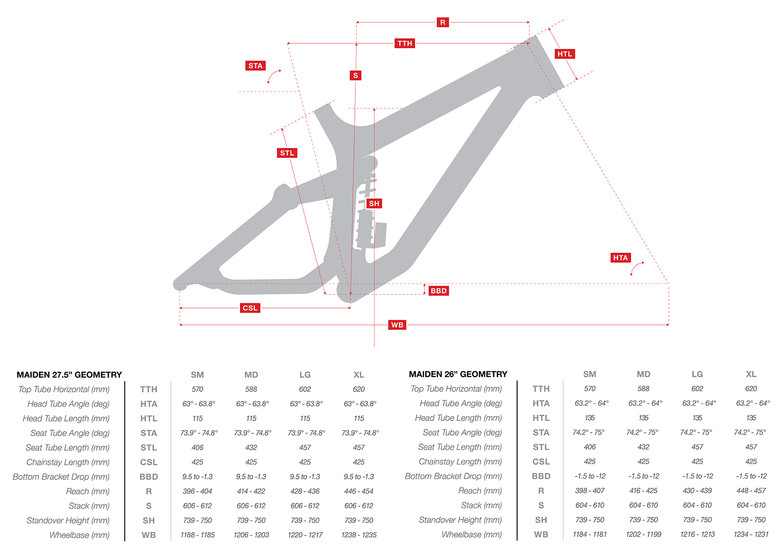 - Optimized for 26” or 27.5” wheels with Equalized geometry