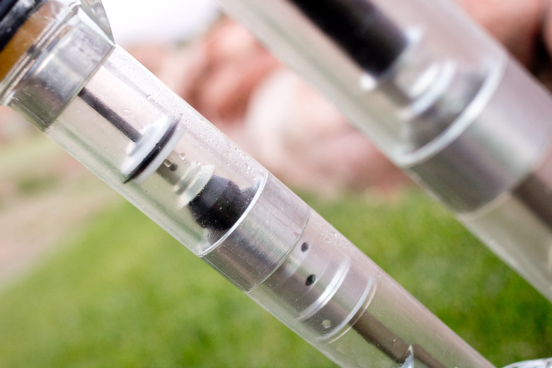 This unique see-through fork lets you look inside the completely redesigned 2015 FOX Float 36 RC2. The fork is making a strong comeback for 2015, and you can count on several of the world's best Enduro racers riding it this season.